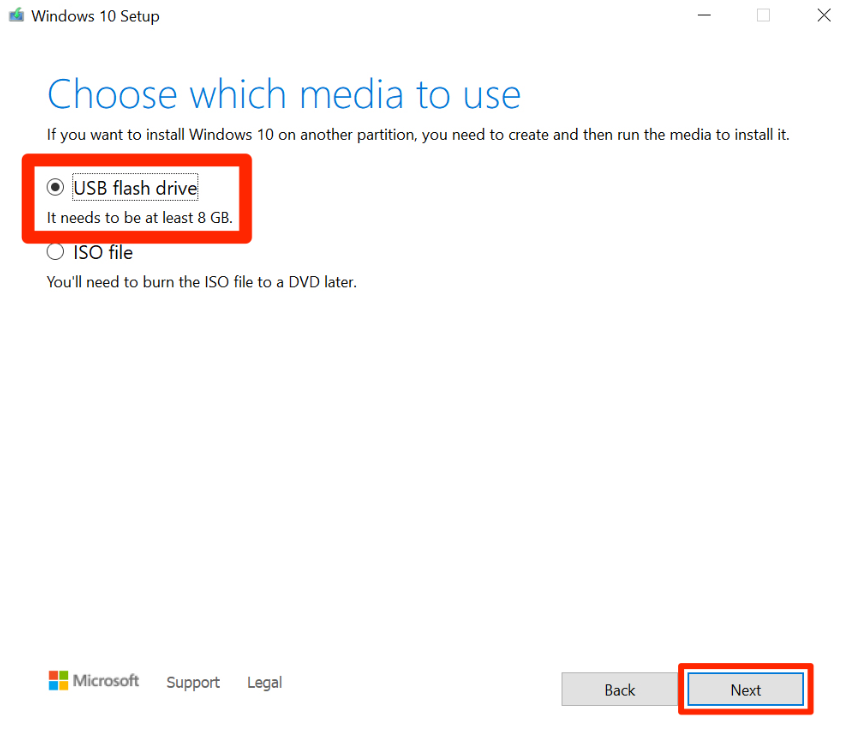 * Select **Create Installation media (USB Flash drive)**